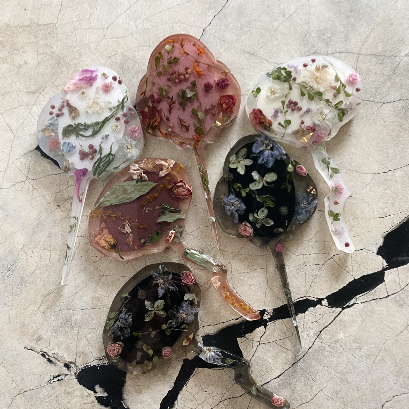 Цветы, собранные вручную, формируют шары и сосульки – живые объекты, прошедшие пластификацию. Они больше не тленны, но сохранили текстуру, цвет и трепет лепестков.